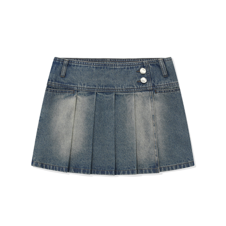 ワイドフィットピンタックナッピングデニムパンツ【ダークブルー】